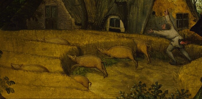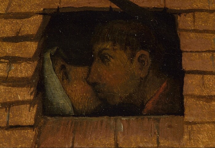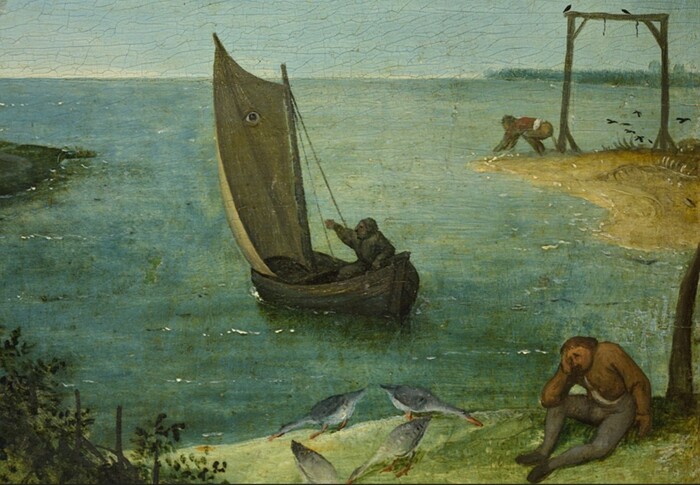 Или наоборот: слепая вера в догмы и авторитеты прошлого ведёт к гибели? Как искусствовед (на минималках), я прежде всего должен обратить внимание на внешнее, на материал, а не на смыслы картины. Но то, что имел в виду сам художник, не так важно; более важно то, чего придерживаетесь вы теперь. Куда смотреть, а на что оглядываться.