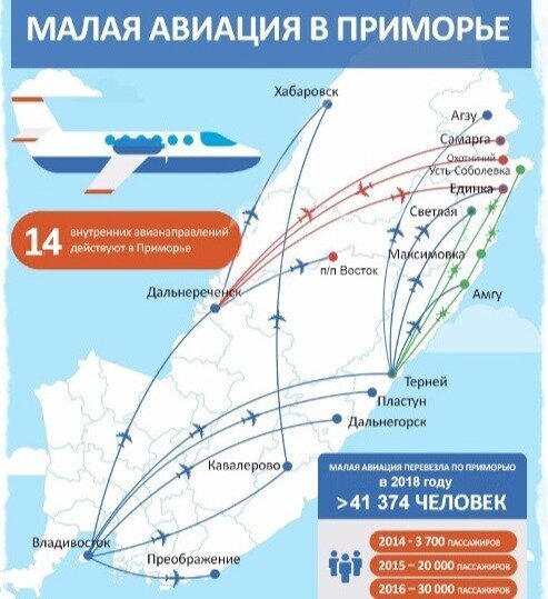 Изменения не заставили себя ждать - и в последние годы малая авиация активно развивается. В первую очередь, конечно, в труднодоступных регионах. Дальний Восток здесь в первых рядах. Например, в Приморье глубоко в горах множество небольших посёлков с населением 200-500 человек, а дороги там особо и не проложишь. В итоге, из какой-нибудь Единки до Владивостока, столицы Приморского края, нужно трястись по грунтовке почти двое суток.