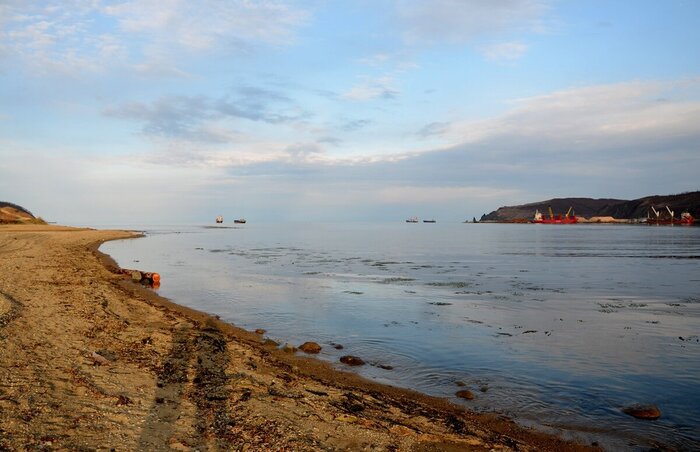 Вот на рейде в ожидании своей очереди стоит ещё пара кораблей. А со стороны за портом тщательно наблюдают две цапли. Птиц в этих краях, конечно, великое множество, особенно на островах. Почти целый день из этого отпуска мы выделили на фотоохоту за птицами на необитаемом острове Лисьем под Находкой. Надеялись увидеть ещё и нерп (небольших местных тюленей), но не повезло, зато увидели дельфинов. Впрочем, про это будет отдельная история.