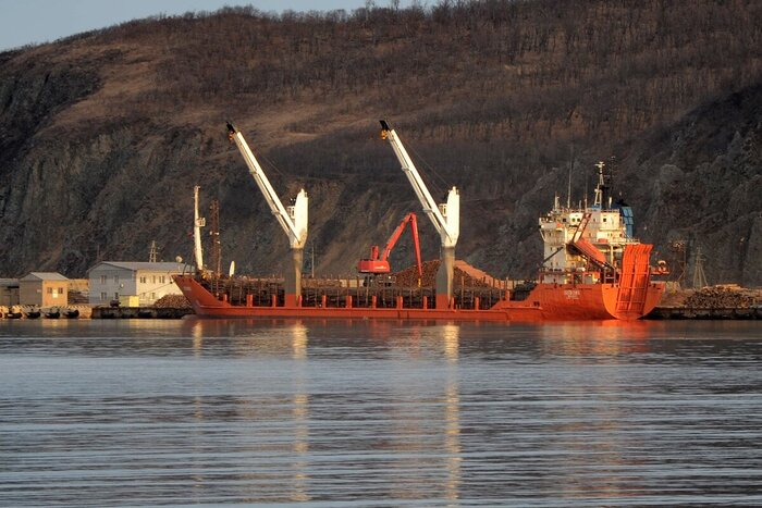 А вот в небольшом местном порту грузится лесовоз. Куда? В Японию и Китай, конечно, куда же ещё.