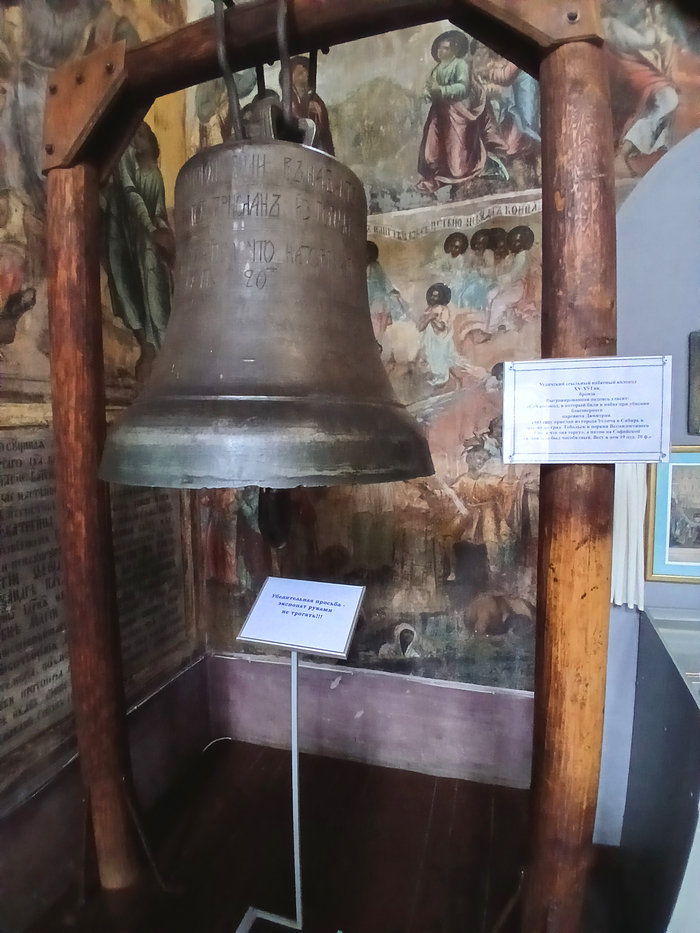 Еще один интересный артефакт той эпохи - Угличский набатный колокол. Как известно, убийство царевича вызвало беспорядки, в ходе которых горожане устроили самосуд нескольким чиновникам, которых они считали причастными к трагедии. осле беспорядков в Угличе правительство прислало в город доверенных людей, которым было поручено провести расследование произошедшего и наказать виновных. Следственную комиссию возглавил князь Василий Иванович Шуйский, который вынес вердикт: смерть царевича - несчастный случай, а действия горожан - бунт. 200 человек были казнены, многие сосланы в Сибирь. И в Сибирь же был сослан набатный колокол, который "подстрекал народ к бунту" (чувство юмора у судей бывает странное).