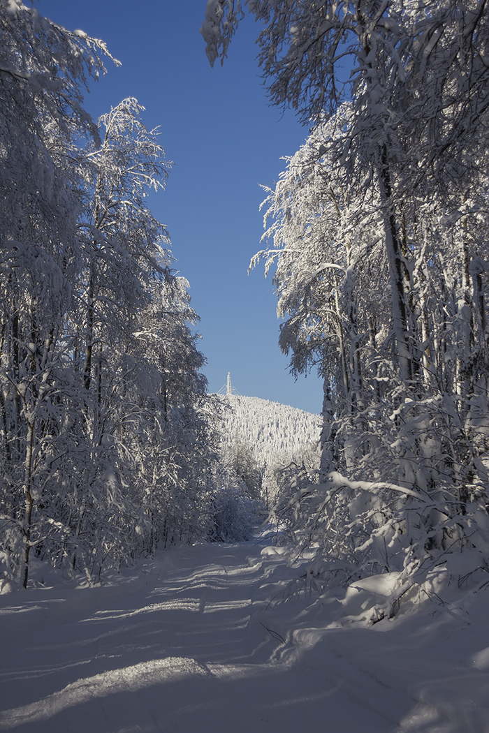 Рассмотрев наверху все проходы и места куда можно без препятствия пройти, мы устремляемся на самый верх горы, попадая в объятия ветра. Стоя на вершине, охватывает чувство страха, сменяющиеся на восторг от умиротворяющей атмосферы: край таёжных лесов. Вдали хорошо просматривается легендарный камень Полюд с расположенной на его вершине телевизионной вышкой, именно к нему устремились повстречавшиеся нам туристы.