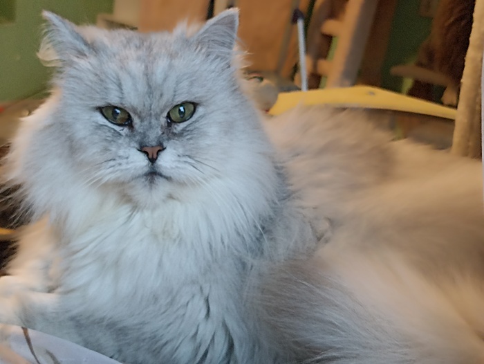 Зайка, молоденькая кошка, ей примерно 2,5 года. С очень красивой шерсткой, окрас как колючки у ёжика, основание тёмное, а кончики светлые). Но абсолютно не доверяет людям(.