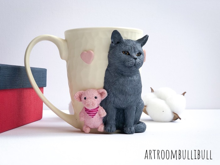 [моё] Кот Британский кот Кружка с декором Полимерная глина Ручная работа Портретная кружка Длиннопост