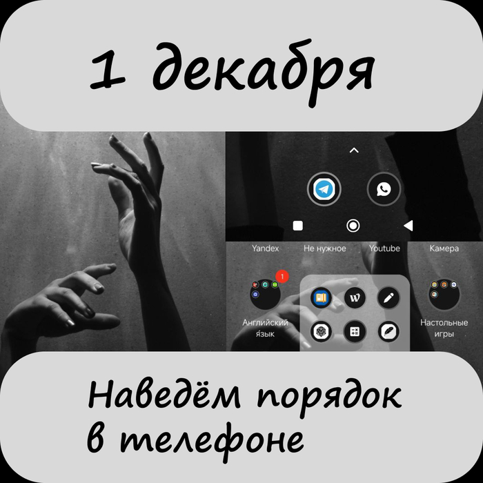 Полезный совет: если вы не можете выделить для этого время, займитесь наведением порядка в телефоне, когда едете в транспорте, ожидаете своей очереди, смотрите фильм. Или вспомните об этом, когда бесцельно листаете соцсети. Телефон играет в нашей жизни такую большую роль, что, наведя в нём порядок, вы оптимально организуете своё диджитал пространство.