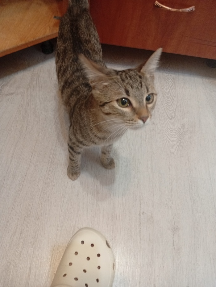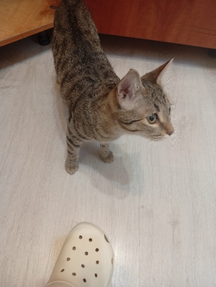 💕Клео - изящная, тоненькая, грациозная полосатая девочка. Самую малость пугливая с новыми людьми, но стоит её взять на руки, утыкается в человека и тихонечко мурчит, не веря своему счастью. А ещё она юный смелый исследователь, любит находить новые места, где можно полазить, попрыгать. Это настоящая шустрая заводила в кошачьем коллективе.❤️