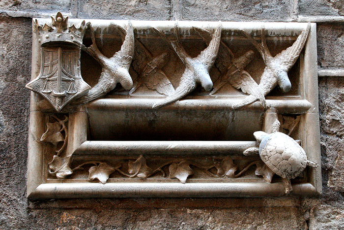 В Барселоне есть сложносочиненный дом архидьякона. Сначала римляне построили стену. А потом в XII веке к римской стене добавили еще парочку и пошло-поехало. Тут вам и ренессанс, и готика, и модерн под одной крышей. Короче, архитектура на любителя эклектики. А эклектику смело можно любить фрагментами. Я люблю почтовый ящик этого дома: