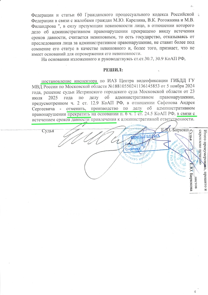 - Истра самостоятельно нашла присутствие нужных знаков и отменила штраф