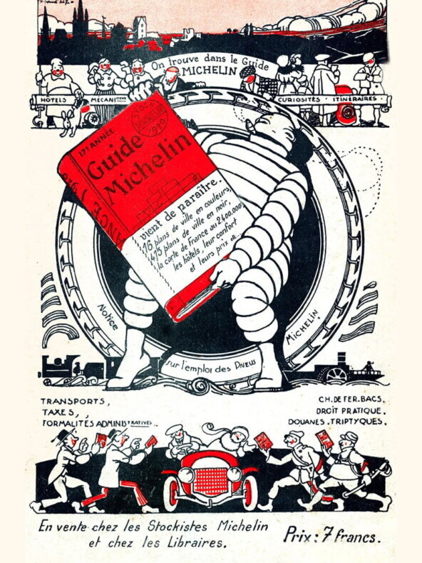 А чтобы у водил вообще не осталось отмазок батониться дома, Мишлены настрогали АЖ 35 000 штук путеводителей с картами, с заправками, отелями и мастерскими. И начали раздавать эту макулатуру на халяву всем встречным-поперечным.