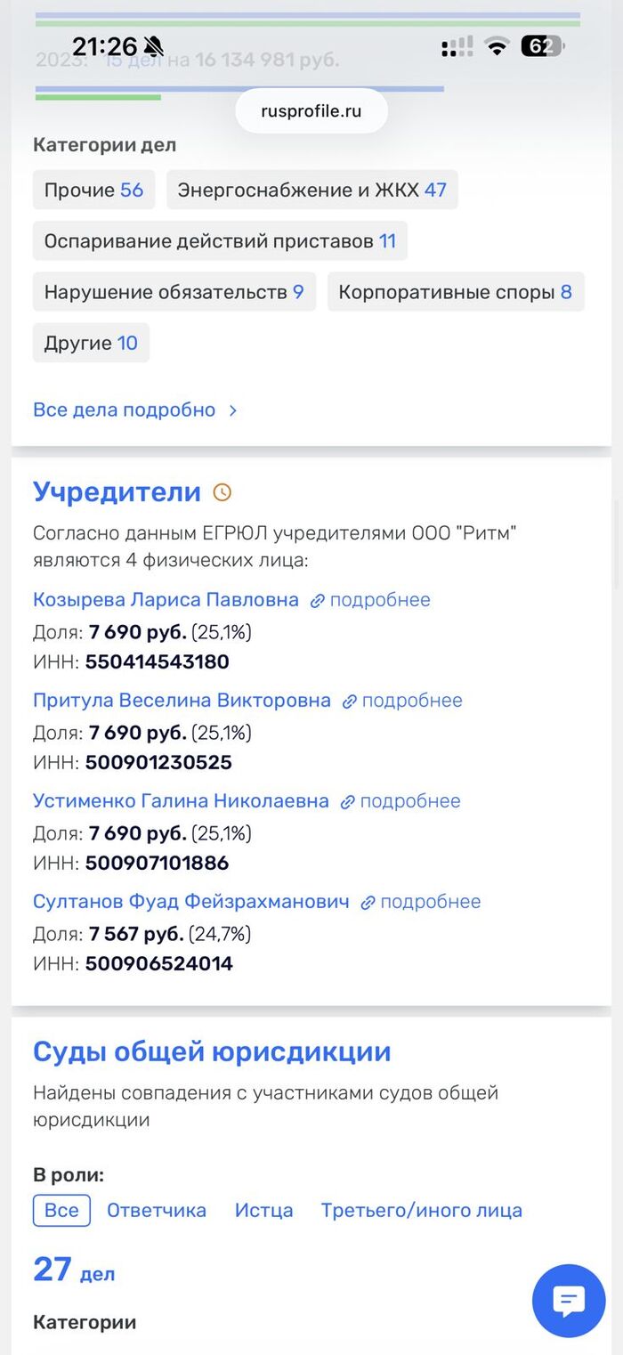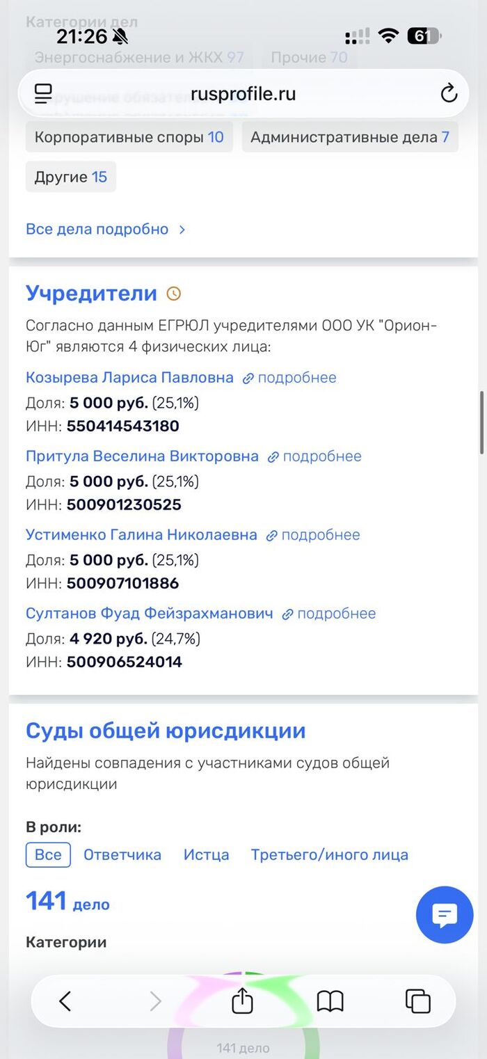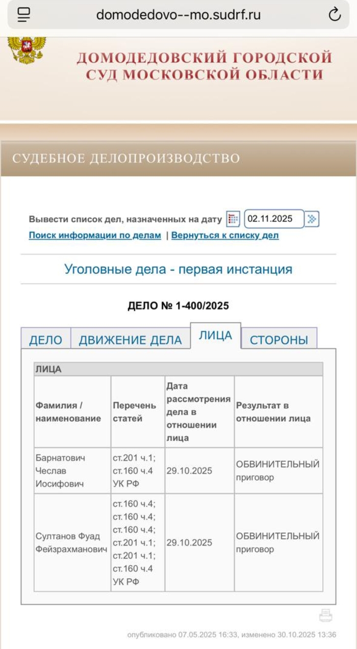 Как следует из материалов уголовного дела Домодедовского суда №1-400/2025, по одному из учредителей управляющих компаний ООО «Ритм» и ООО «Орион ЮГ» вынесен обвинительный приговор. Суд признал его виновным в растрате денежных средств, собранных с жителей по статье «содержание и ремонт жилья».