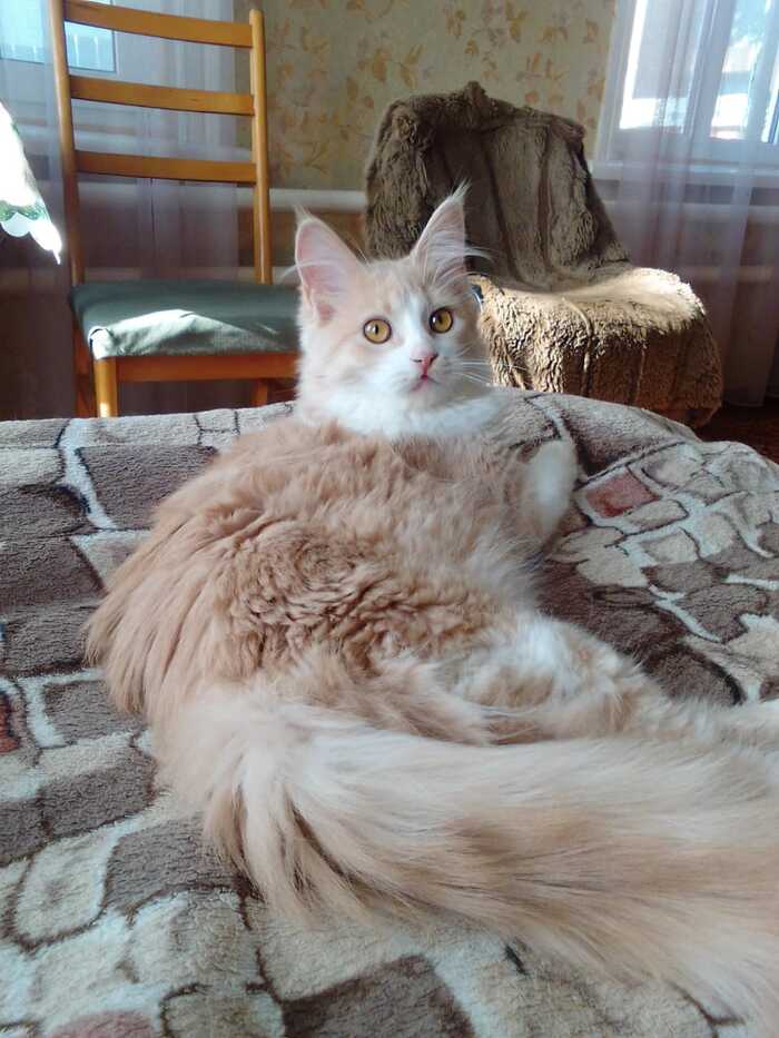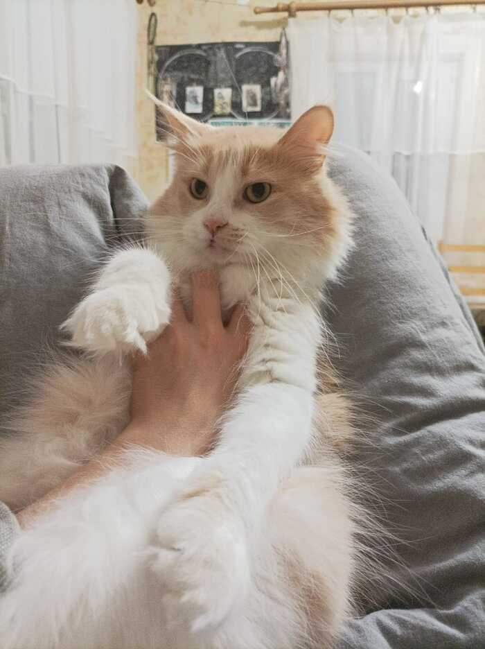 Глаз удалось спасти, разодранный чем-то рот зажил и мелкое недоразумение превратилось в шикарную кошку. Она очень ласковая, невероятно спокойная и тихая. Обожает бегать в колесе (в начале этого года мы подарили девчатам беговое колесо), смешно кряхтит на птичек за окном. Умом не блещет, зато обаяния у неë хоть отбавляй!