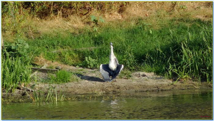 За качество не ругайте - снимал с расстояния метров в 150-200. При попытке подкрасться по ближе пташка упорхнула. Смог подползти буквально метров на тридцать - плоский и открытый берег с моей стороны оставляли мало шансов на маскировку.