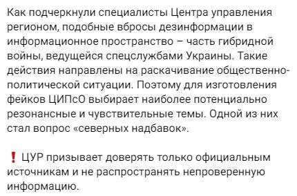 За распространением подобных фейков обычно стоят украинские ЦИПсО, цель которых вызвать панику в обществе и дискредитировать действия властей.