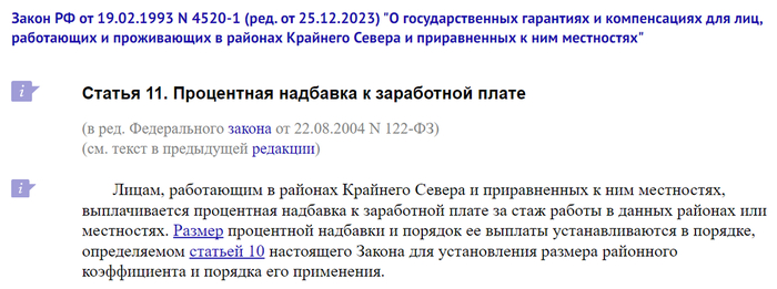 Ни о какой отмене процентной «северной» надбавки к зарплате речи идти не может, потому что ее выплата закреплена в Законе РФ от 19 февраля 1993 года № 4520-1 «О государственных гарантиях и компенсациях для лиц, работающих и проживающих в районах Крайнего Севера и приравненных к ним местностях».