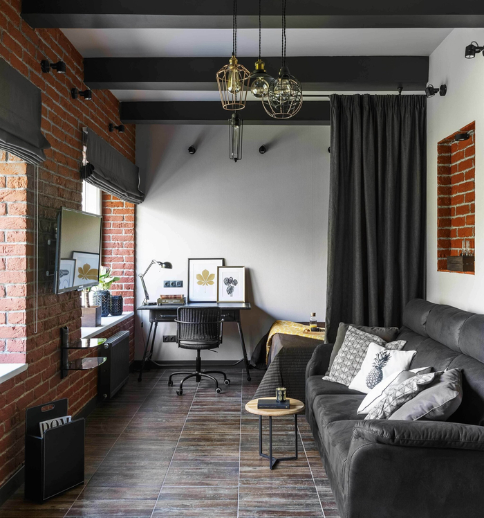 Лофт – это брутально и практично. И это, пожалуй, самый сложный вариант для маленькой площади, потому что он любит простор и открытость. Идеально для студии. Стены тут часто имитируют кирпич, бетон или грубую штукатурку, коммуникации могут быть открыты. Да, выглядит это эффектно, но требует очень продуманного зонирования, чаще всего мебелью или перегородками. И вопреки внешнему виду, это, как ни странно, часто самый дорогой вариант отделки. Зато какой!
