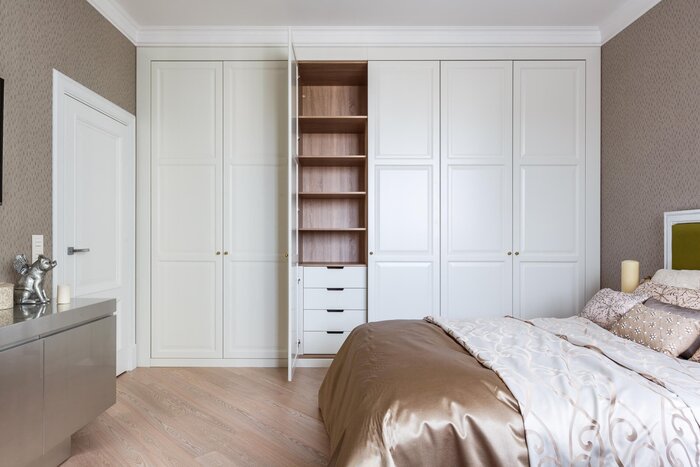 Зеркала и глянец: зеркальные фасады шкафов увеличивают пространство. Глянец работает так же, отражая свет. Главное, не переборщить, чтобы не жить в «зеркальной коробке».