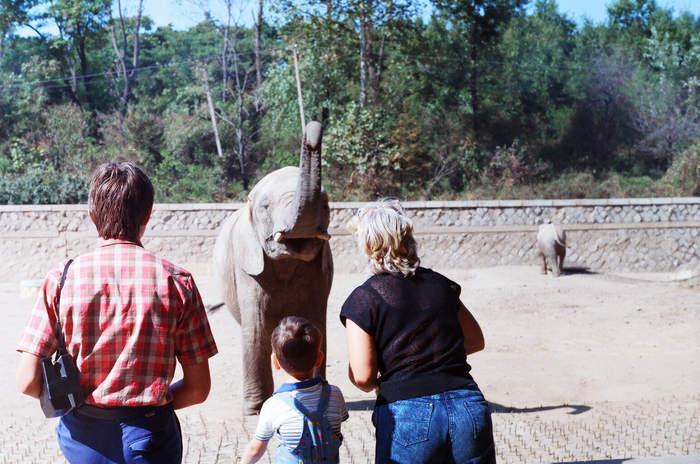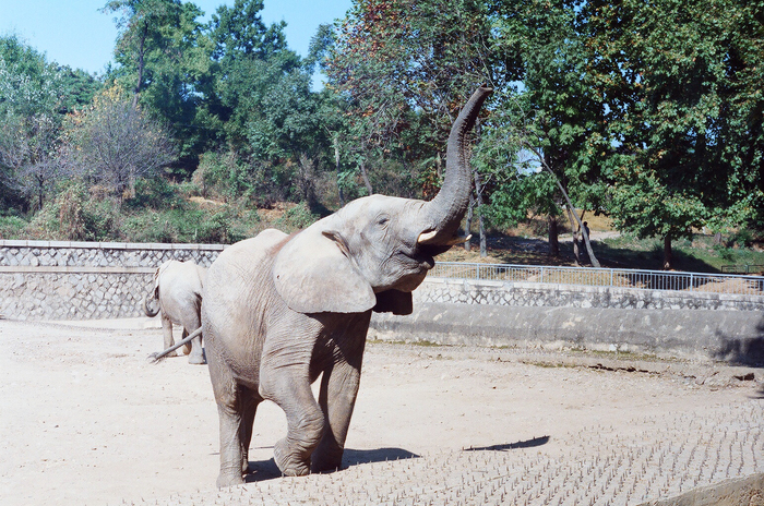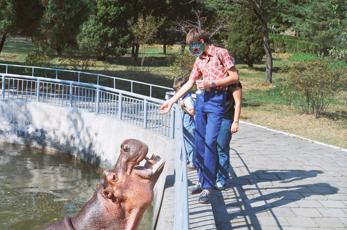 Кстати, концепция «животных не кормить!» тут не работала. Мы кормили и всяких зебр, и слонов, и бегемотов! С последними вообще забавная тема была. Они подплывали к бортику, поднимали голову, открывали свою пасть и ждали, пока люди туда накидают всякого. Через какое-то время пасть закрывалась, и бегемот с важным видом пережёвывал всё, что ему досталось. К сожалению, не помню, продавали ли специальную еду где-то рядом, или мы её просто брали из дома.
