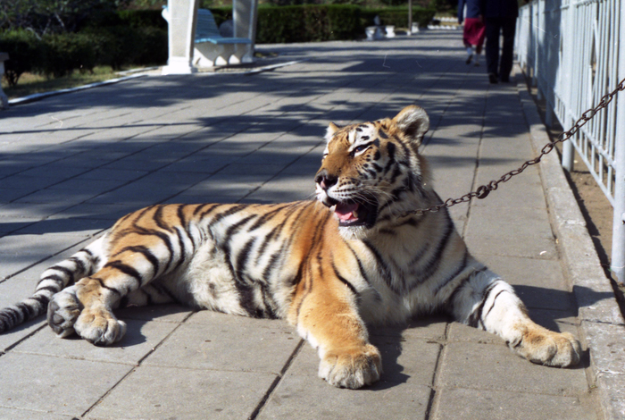 Понятное дело, что рядышком сидел представитель зоопарка и следил за порядком. И с тигрёнком можно было сфоткаться. У меня даже есть снимок, где я стою позади этого котика с максимально скучным лицом. Меня даже придерживали, чтобы я не ушёл из кадра! Но, увы, в архивах я вообще не могу найти этот снимок. 😭 Так что придётся поверить на слово.