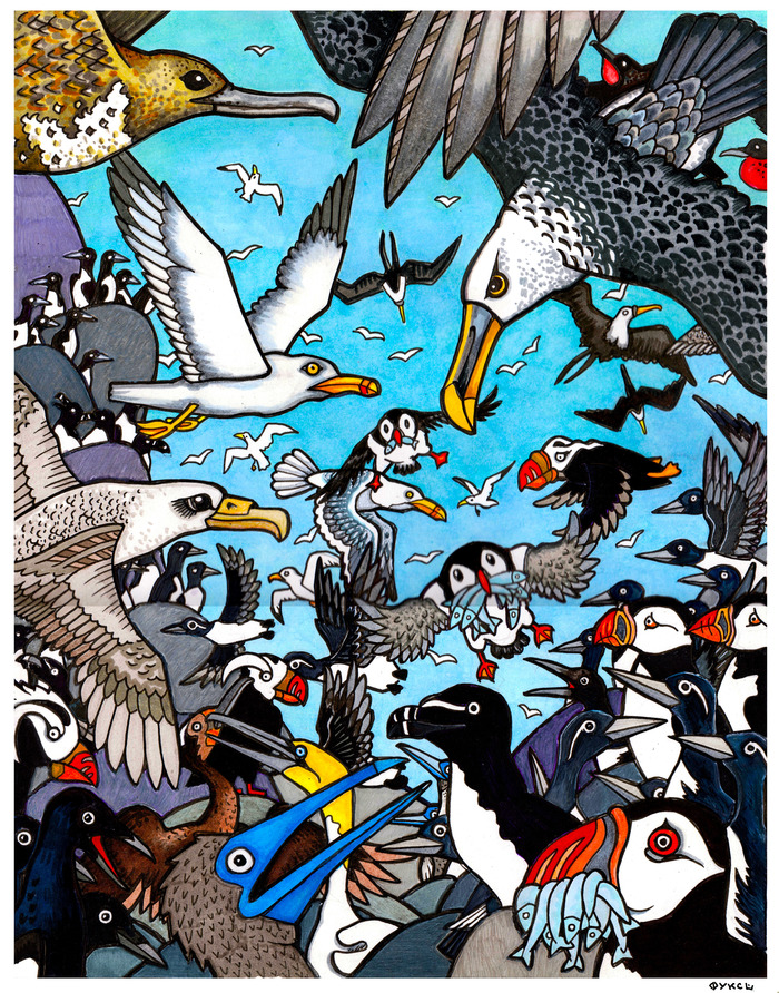 На этом острове я впервые в своей жизни увидела многих северных птиц: чаек, (серебристых), морских крачек, гаг, кулика-сороку, дрозда и других.