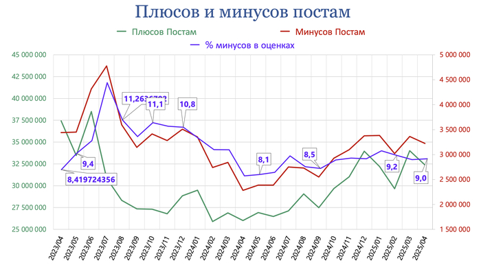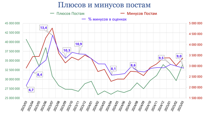 Постов - Баянов - 3 498 (2,9%, на 3% меньше к предыдущему месяцу).