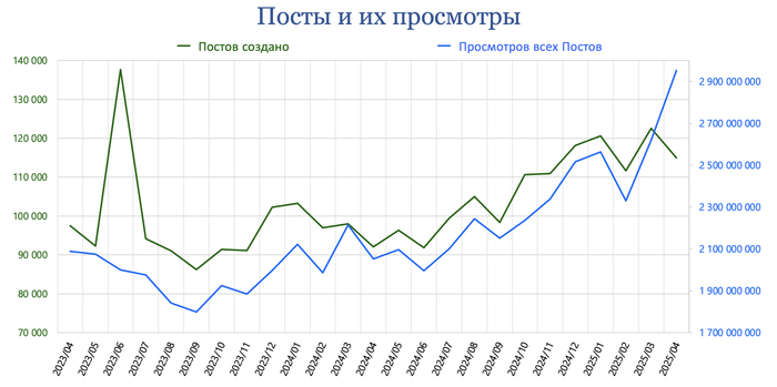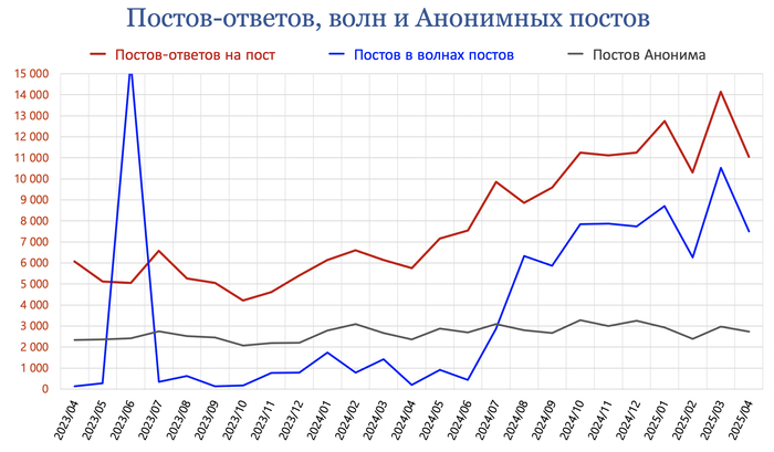 Постов-ответов на пост написано 14 141 (11,5%, на 37% больше к предыдущему месяцу).