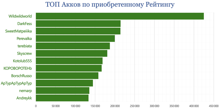 На конец месяца удалили свои аккаунты и не вернулись 1 563 пользователей (в прошлом месяце - 1 746). Восстановили аккаунты 302 (в прошлом месяце - 300). Переименовали свои акки 151 (в прошлом - 144).