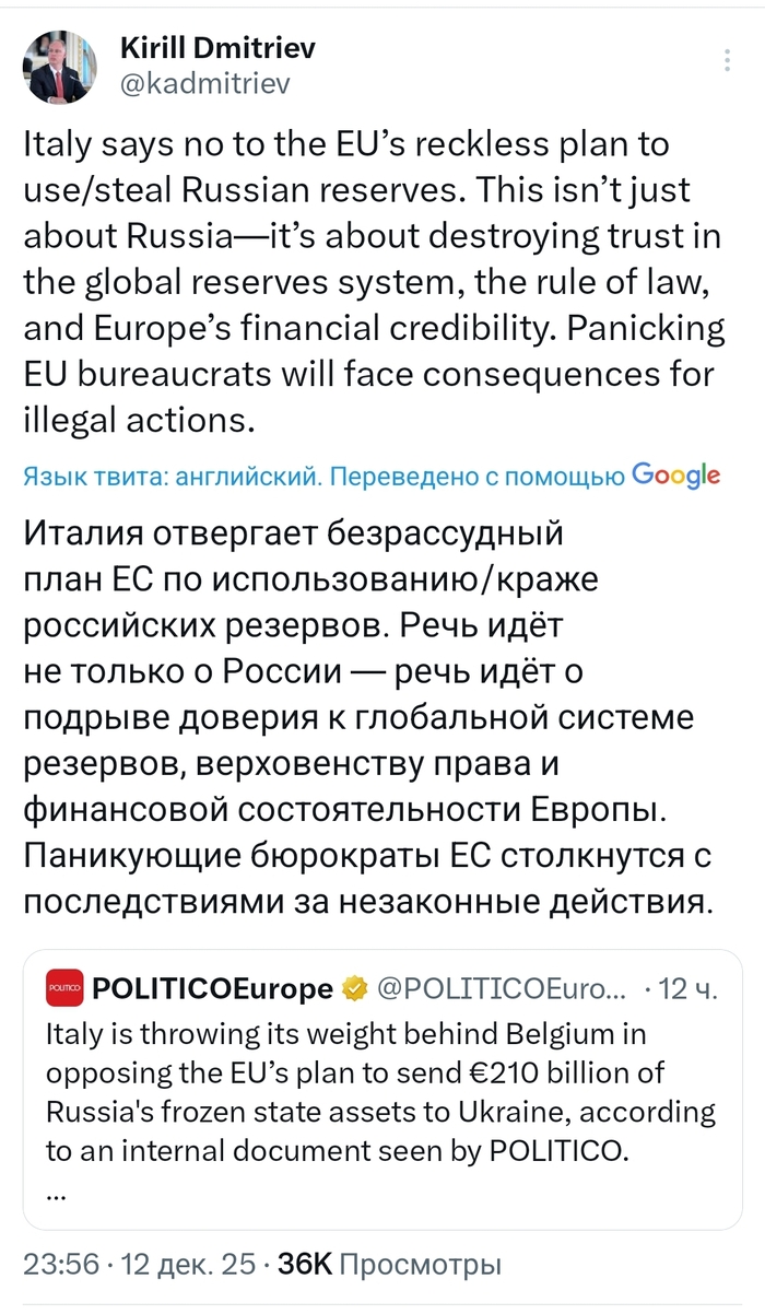 Продолжение поста «О хищении российских активов Евросоюзом»2