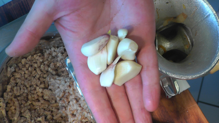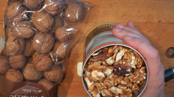 Перемалываем все до более или менее однородного состояния. В итоге грецкие орехи не должны чувствоваться как отдельные кусочки.