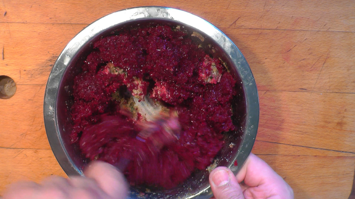 В получившуюся основу добавляем натертую на мелкой терке свеклу.