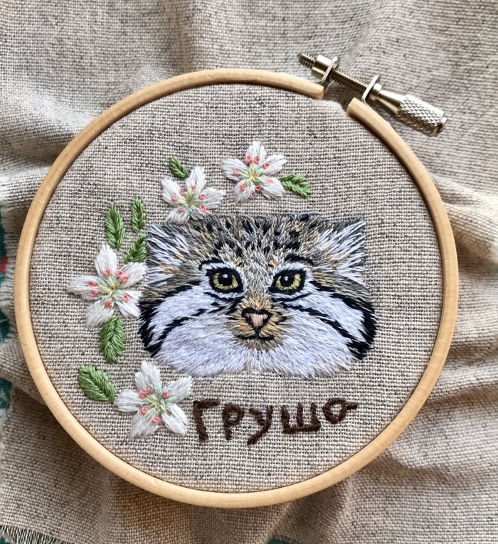 Манул Малые кошки Семейство кошачьих Вышивка Пяльцы Рукоделие Длиннопост Вышивка гладью