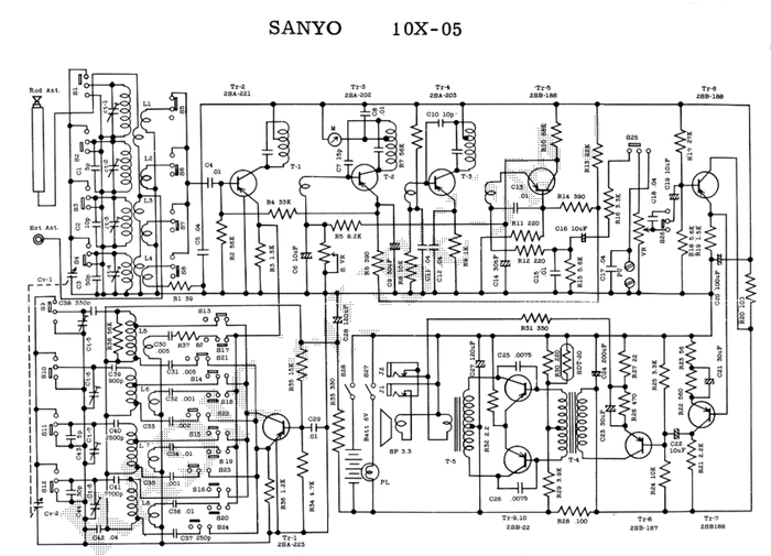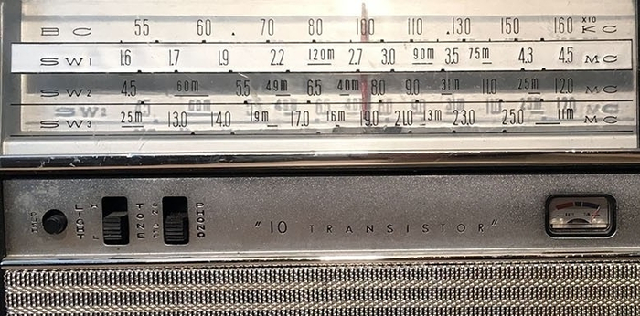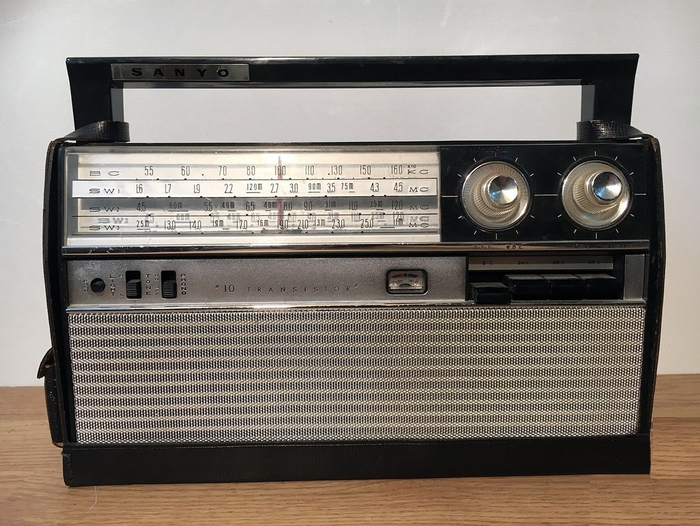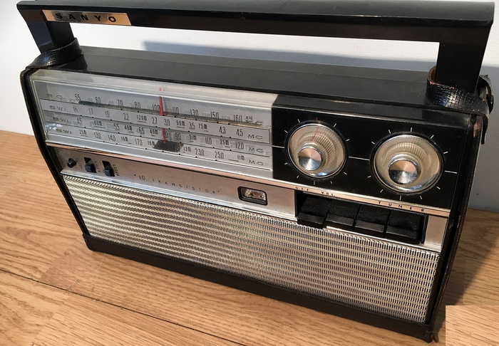 На самом деле это SANYO-10X-05. Радиоприемник выпускался с 1965 года. Вся схема собрана на 10 транзисторах. Тут два диапазона: СВ и КВ. КВ диапазон разбит на три поддиапазона.