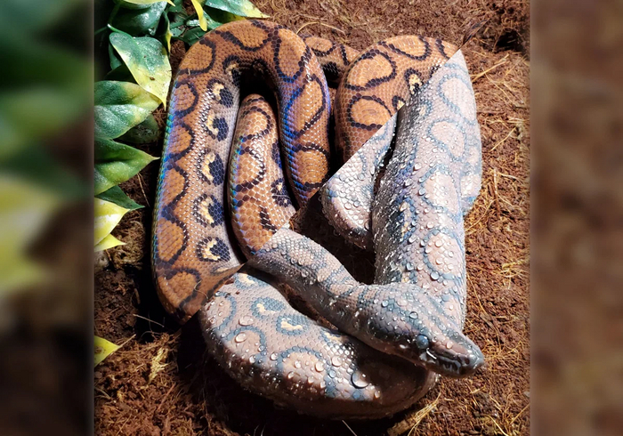 Радужные удавы — яйцеживородящие змеи. Поэтому спустя 5 месяцев беременности на свет появляются 10-15 маленьких, но вполне дееспособных змеёнышей.