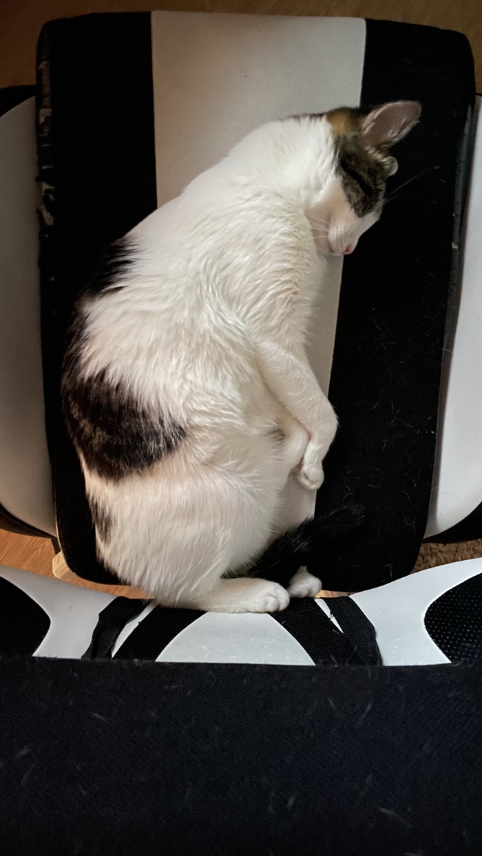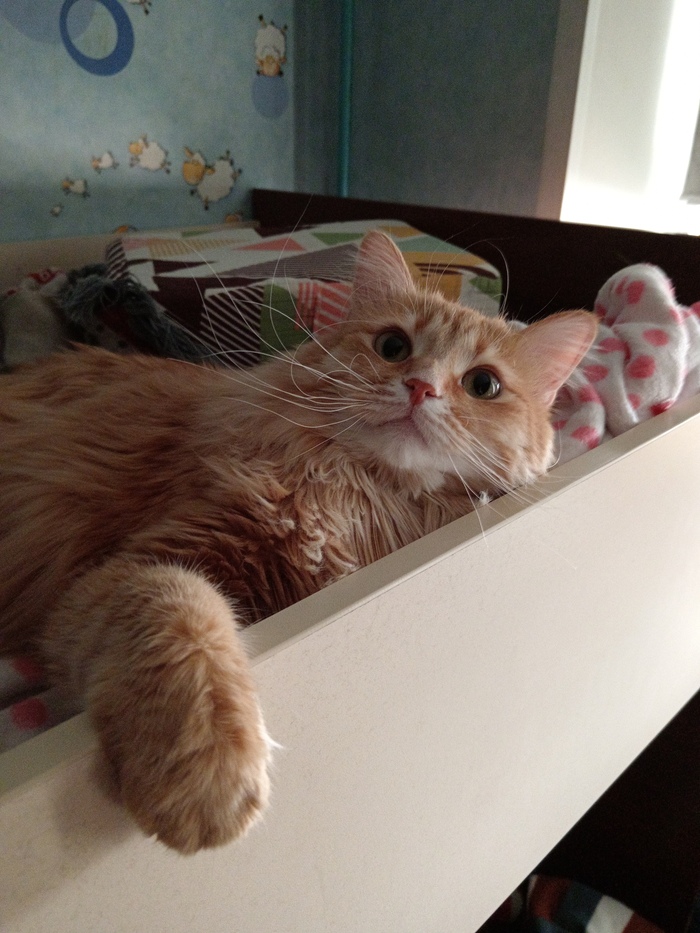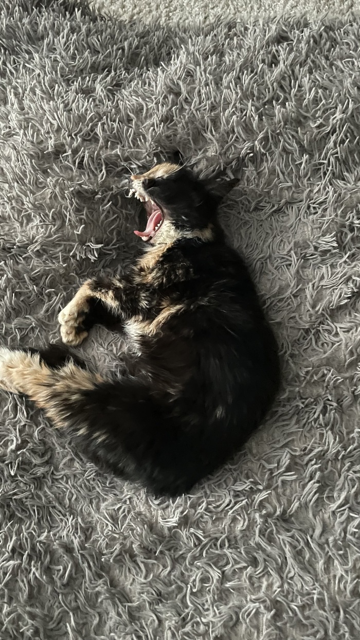 Докладываю, Кошочька успешно покормлен, выспан, почесан и поглажен. В данный момент вошел в режим "уйдите, никчемные никчемни, к ветеринарской бабушке, дайте кошочьке пострадать от тяжести жизни", что я, собственно, и сделал, предварительно сфоткав