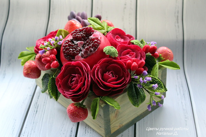 Цветы слеплены вручную, каждый лепесток, листик, бутон и даже мельчайшие чашелистики.