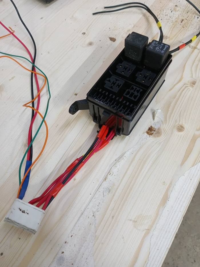 Первое - это блок для стеклоподъемников. Решил делать на 4-х реле, т.к. кнопки сейчас ненадежные и хотелось бы избежать подгорания контактов.