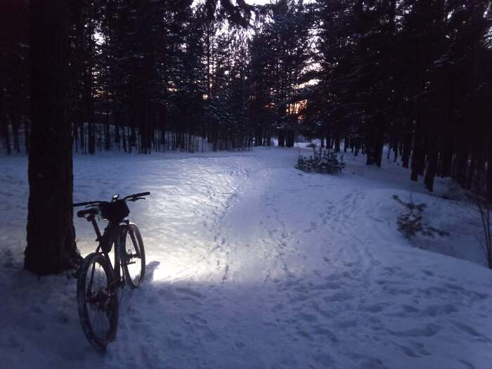 После 15км, приближаясь к цели, трасса оставалась в стороне, распознавая родные ёлки и тропинки, начало возвращаться нормальное зрение, четче стал видеть предметы, вернулось понимание осознания того, кто я и где я, геопозиционирование на местности включилось (природное) сил прибавилось до финального рывка. Отпустила тошнота и я даже отодрал одну руку от руля, что бы ее размять... ну как плеть повесить. Пот вполне сошел хоть за какую то жидкость, вспоминал фильм "Дюна" и знал, что есть литья и иголки нельзя, а так хотелось.