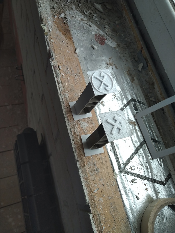 недолго думая, расчехлил 3D принтер и с помощью термопистолета закрепил напечатанное к обрезкам подоконника.