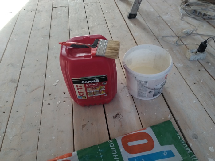 перво наперво всю стену покрыл грунтовкой с песком (церезит какой то)