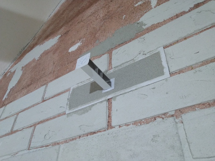 для ЛЛ, делаем кирпичики на стене из гипсовой штукатурки.
