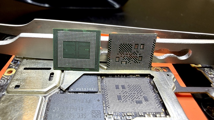 Был проделан реболлинг процессора и оперативной памяти, после чего смартфон снова в строю.