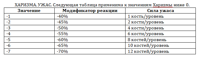 Заметьте, что эти эффекты были доступны лишь существам божественной природы! Если смертнорождённый (mortalborn) каким-либо образом обретает Харизму выше 18 или ниже 0, он не получает возможность источать ауру Благоговения или Ужаса. Также отмечалось, что у божеств с отрицательной Харизмой никогда не будет приспешников обычной природы.