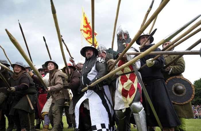 Боевым строем шотландской армии в те времена являлся шилтрон («движущийся лес»). Почти правильный круг при обороне, воины плечом к плечу, во все стороны – длинные пики. При наступлении шилтрон менял свою форму, становился эллипсом или прямоугольником, но густой лес пик – непременно.