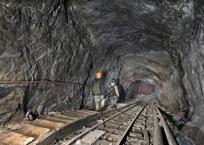 Посмотрев на систему проветривания шахты, мы двинули дальше в глубь горного массива. В штольне сохранилось довольно много железа – в основном это различного рода трубы, вагонетки и даже двери. Видно, что "металлисты" тут не работали по чермету, а отсутствующие силовые кабели были демонтированы сразу после отработки горизонта.