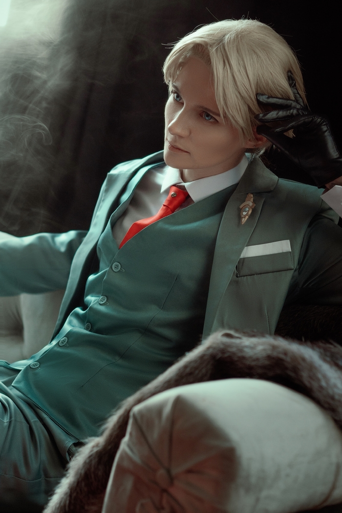 Чулочки и фарфоровая кожа, изящная волна черных волос, тоже характерные черты амплуа Диты фон Тиз. Цвет глаз я меняла с помощью линз, кожу высветлили тоном, грим добавляли на нос.