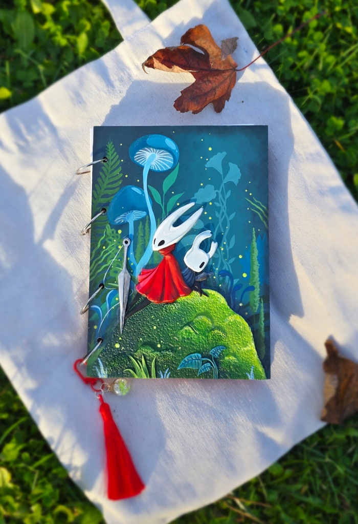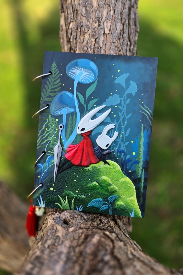 Блокнот формата А5 ручной работы с объемной обложкой вдохновленный игрой "Hollow knight".