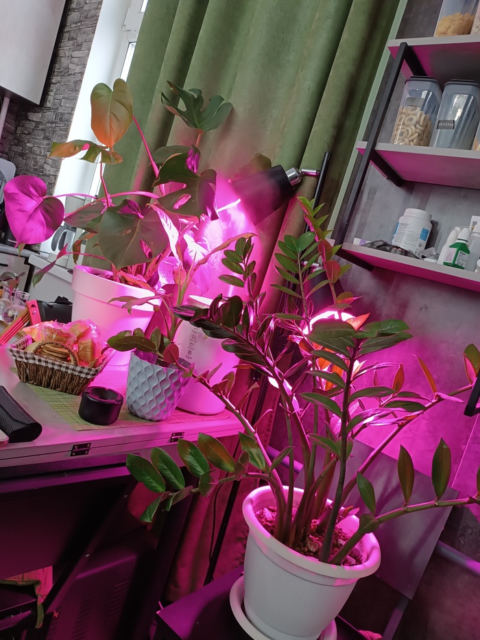 К моей молодой монстере мне подарили ещё одну, но уже с резными листьями. Ссадила вместе, получилось прям круто, но из-за северной стороны и короткого лета поставили подсветку (где-то прочитала, что досвет в точки роста ускоряет формирование новых листов), ведём наблюдение. Замиокулькасу с подсветкой тоже стало лучше. Дал 2 новых листа, хотя до этого молчал полгода.