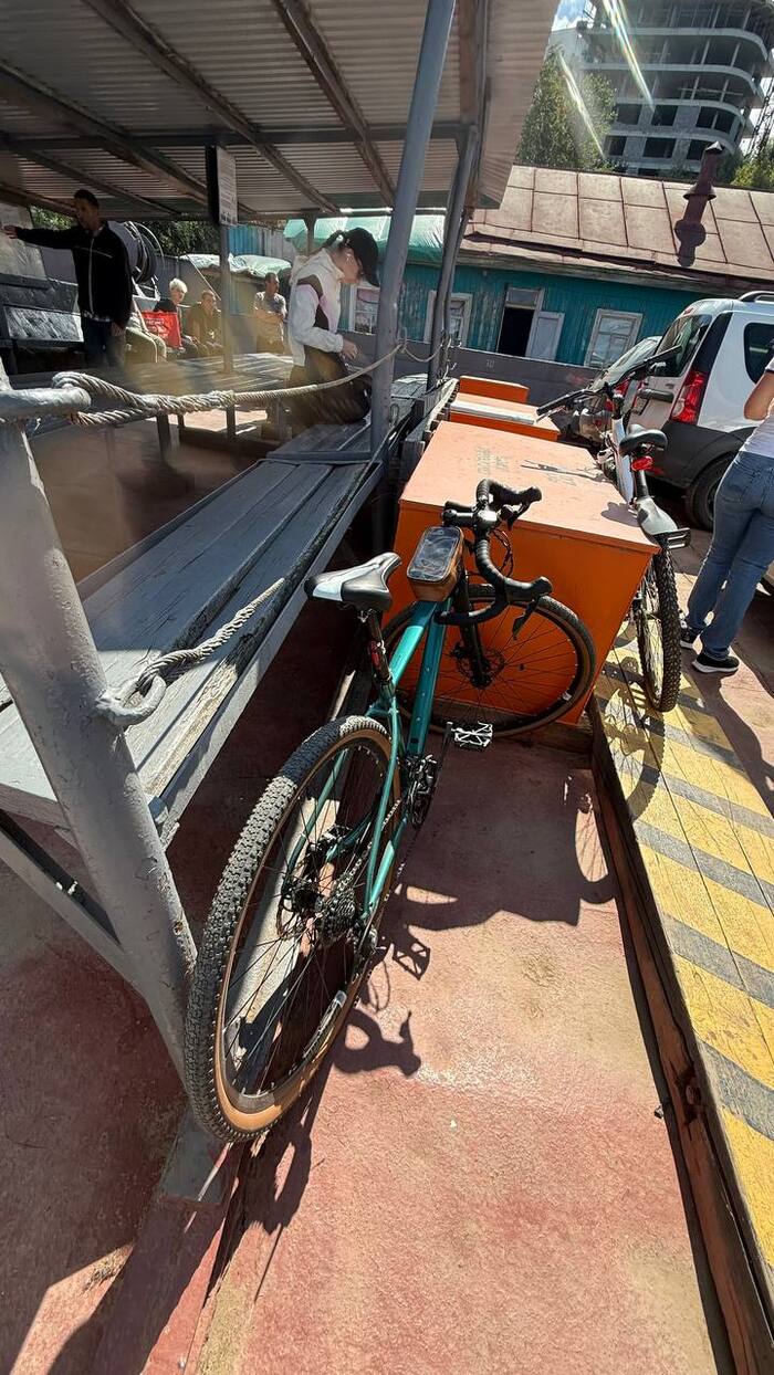 От Самары в 11.00 на грузовом пароме добираюсь до села Рождествено. Проезд с велосипедом стоит 270р. Время в пути час. Актуальное расписание переправ здесь