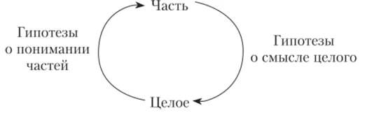 Герменевтический круг отражает циклический характер процесса понимания - это движение познания от целого к частному и от частного к целому.