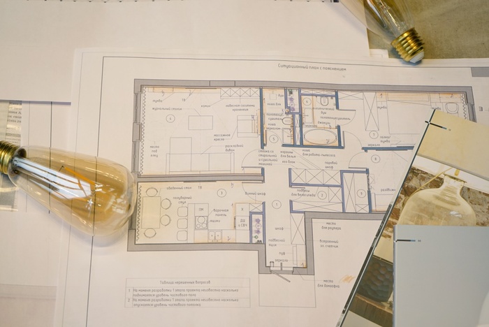 Первый шаг к созданию дизайна квартиры, заполнение анкеты-опроса, которым дизайнер пользуется при разработке проекта. В ней есть ряд вопросов, касающихся светодизайна каждого помещения. Чем вы планируете заниматься в комнате? Во сколько по времени приходите домой? Во сколько просыпаетесь? Какое у вас хобби и где вы будете им заниматься? Для чего используете рабочий стол? А зеркало в ванной? Все это кажется излишним, но ответы могут поразить разницей. Именно так и создается индивидуальный дизайн-проект.