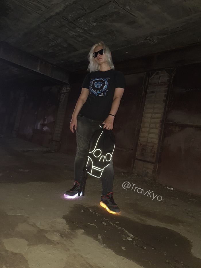 Может кто-то из тех, кто читал мои посты несколько лет назад, помнят этого красавчика. Для ЛЛ: у него глаза-диоды светятся, включаются с пульта. Тема классная, но как сделать так, что бы контур выделить, да ещё стирать можно было? После долгого перебора сложных материалов, нашлось довольно простое решение. Светоотражайка! Никакой электроники не нужно, зато классно проявляется в тёмных переулках. Я знаю, есть тут любители народ попугать. 😈